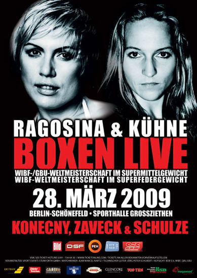 Box-Zarin Natascha Ragosina (19-0-0, 11 K.o.’s) wird in der Sportarena Großziethen ihren 20. Profikampf bestreiten. Drei WM-Gürtel wirft sie am kommenden Samstag, dem 28. März 2009, in die Waagschale. Die ungeschlagene Titelträgerin verteidigt die Kronen der WIBF, der GBU und der WBC.
