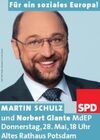 12 Tage vor der richtungsweisenden Europawahl am 7. Juni kommt der sozialdemokratische Spitzenkandidat Martin Schulz nach Brandenburg. Um 18:00 Uhr wird er gemeinsam mit dem märkischen Europaabgeordneten Norbert Glante im Alten Rathaus in Potsdam über seine Vorstellungen für ein soziales Europa sprechen.